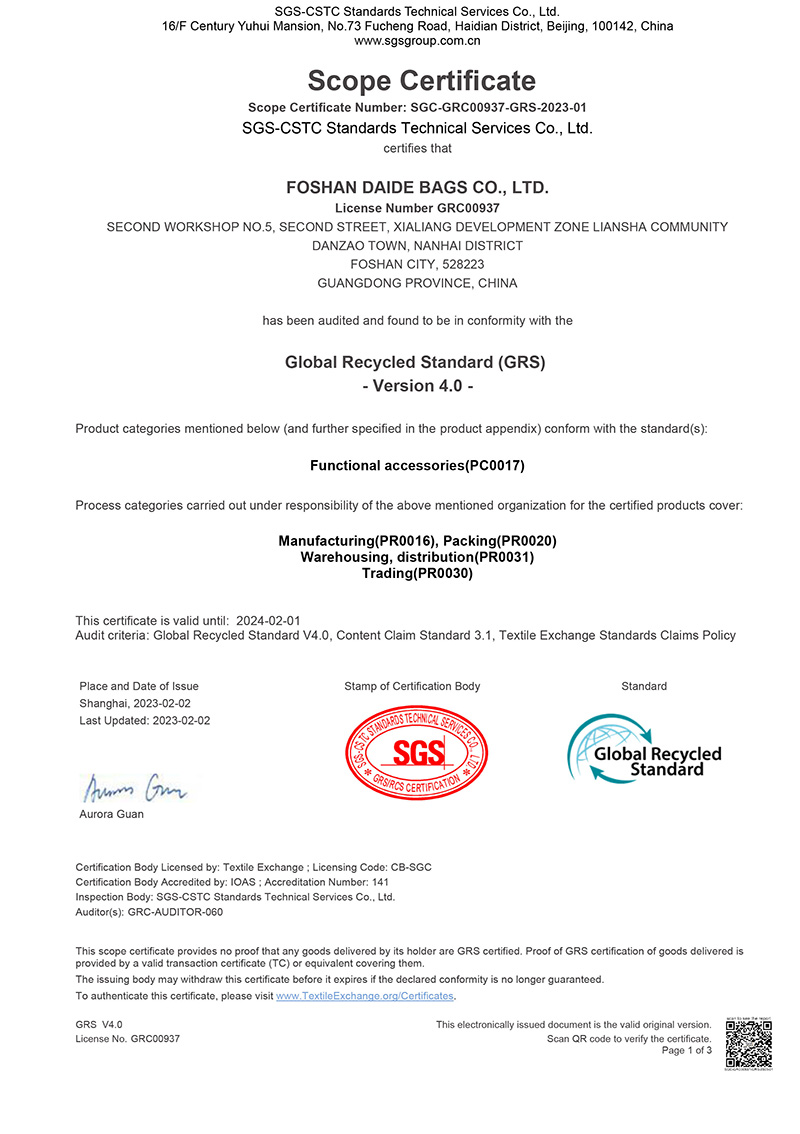 Certificate name:SGC-GRC00937-GRS-2023-01